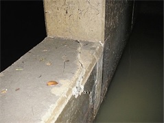 現場打ち部とプレキャスト部の接続部に若干のひび割れと遊離石灰が認められました。