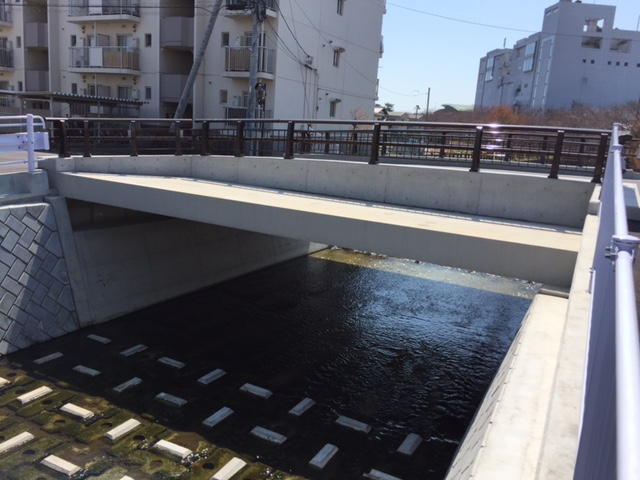 酒匂川流域下水道左岸処理場に隣接する道路の拡張工事として、プレキャストボックスカルバート(大型3分割組立て式)を使用して橋の架け替え工事を行いました。