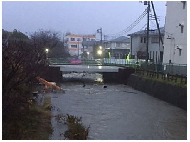 現況川幅は9.2m、使用したボックスカルバートは内幅10.5m 内高2.75m 橋長は11mです。