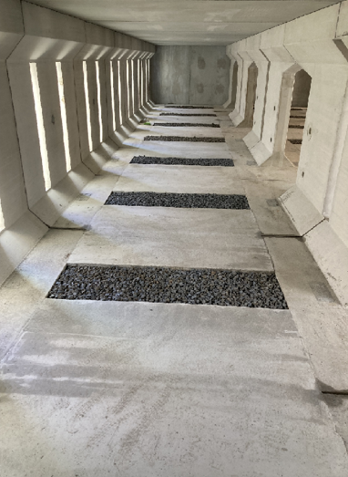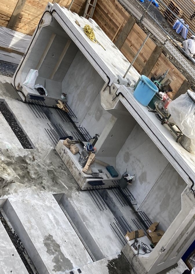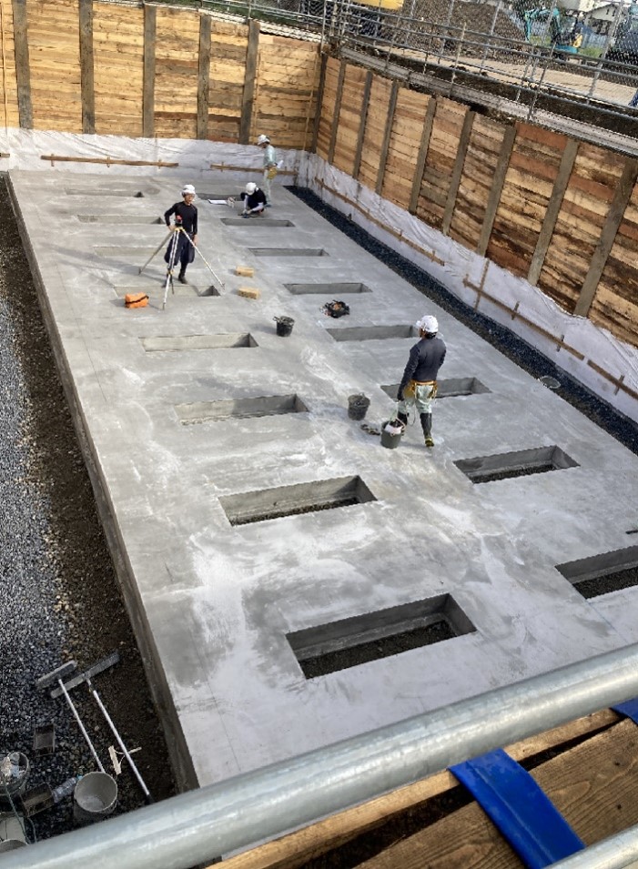 2023年3月30日 / 最終更新日 : 2026年2月9日 Jenez-ADM 施工ニュース [施工事例紹介] 雨水浸透貯留施設 工事内容貯留施設工事製 品H2000 スタンド型浸透調整池 区画整備事業の一環で道路築造の際に当社の雨水浸透貯留施設を敷設いただきました。 側壁に開口を設け、FRPボードを取付けてあります。底版開口の位置に合わせて基礎にも開口を設け、砕石を敷設しました。施工後は製品の周囲にも砕石を敷設しています。 基礎砕石 据付状況 据付状況 据付状況 内部状況 内部状況