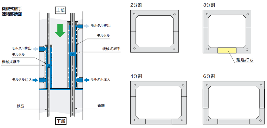 - 接合面はプレストレスの導入などにより、耐力の低減はありません。